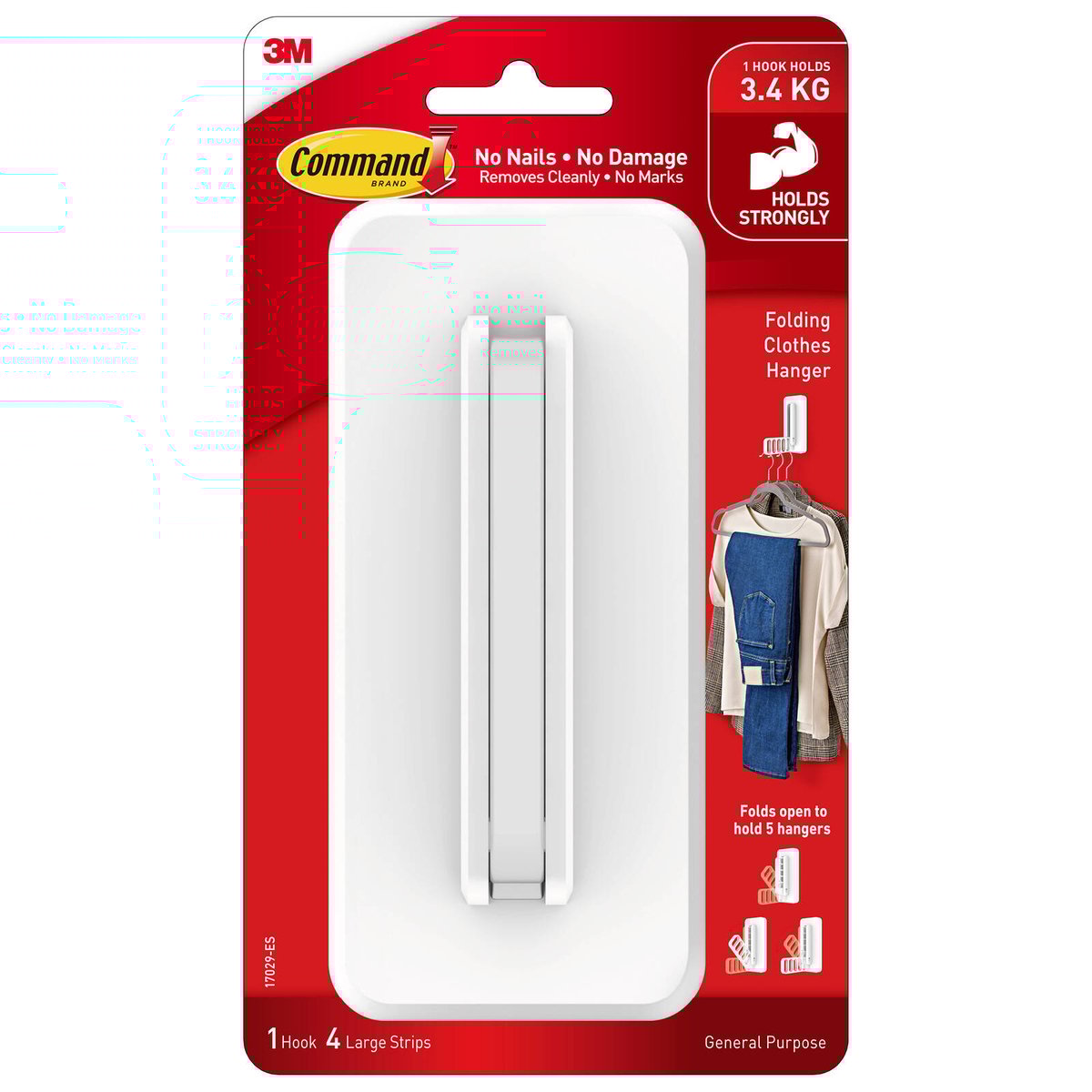 Command White Folding Clothes Hanger 17029-ES Folding Rail Hook