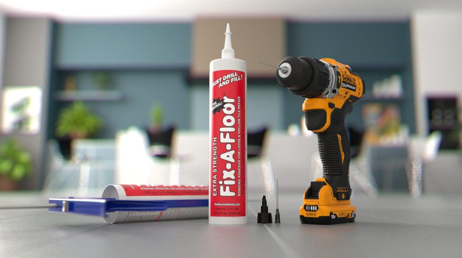 Fix-A-Floor Repair Adhesive, now patented, is an extra-strength bonding adhesive designed specifically for re-bonding loose and hollow tiles, marble and stone without the cost and mess of removing or replacing them.