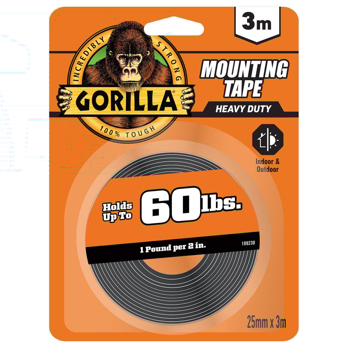 Gorilla Black Mounting Tape delivers a fast, permanent bond for indoor projects. This industrial strength double sided tape grips to a wide range of smooth and lightly textured surfaces, helping you mount, fix, and build without screws or nails.